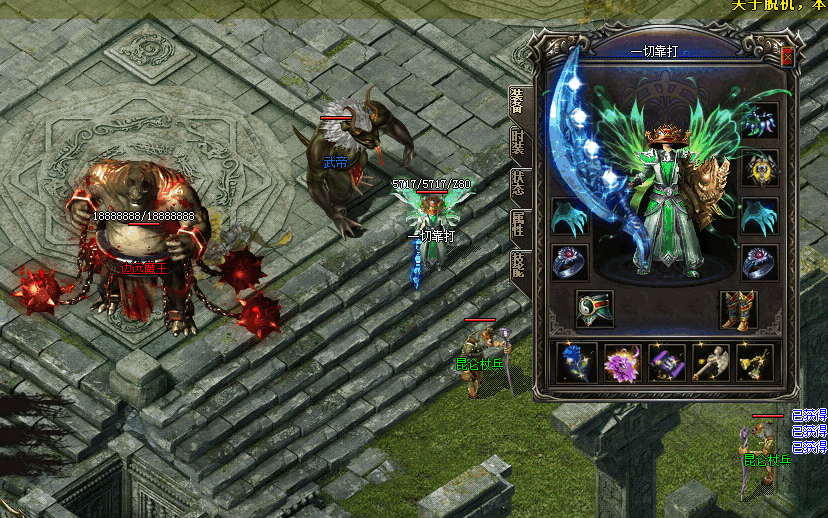 4.【散人攻略】:免费领取散人赞助(刀刀麻痹188真伤)+传送戒指)等福利.单挑一切BOSS,完全可以白嫖通关. 5.【货币介绍】:所有消耗货币均为金币,金币最快的获取方法是打boos,勤劳才能致富。boos爆出金条几率为100爆1 金砖1000爆1. 【装备展示】 【BOSS展示】 【光柱展示】 《本服所有装备均由BOSS爆出》